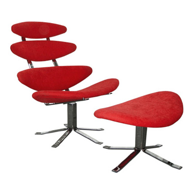 Combina estética con comodidad. Las formas concéntricas sobre el respaldo también pueden ser usadas como apoyabrazos.L: 0,88. P: 0,82. H: 0,97. KGS: 27 (incluyendo otomana).
